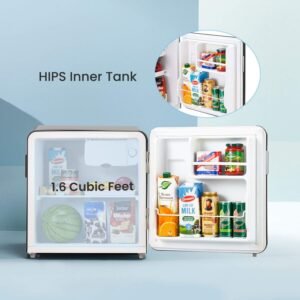 $43.99 Buy Now Quick ViewComfee 1.6 Cubic Feet Solo Series Retro Refrigerator with Flawless Design, Self-closing Hinge, HIPS Inner Tank, Adjustable Legs, Black...