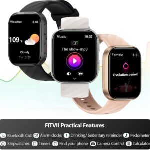 Fitness Monitoring: Know your body better by using FITVII smart watch all day fitness monitoring. Get heart rate, blood...