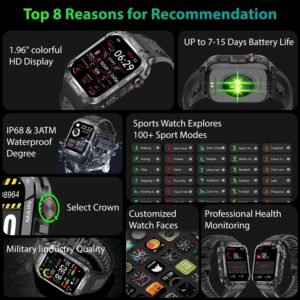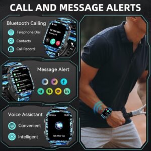 From the brand 【3ATM Waterproof & Military Standard】- The body of the Bassizo military smart watch for men is...
