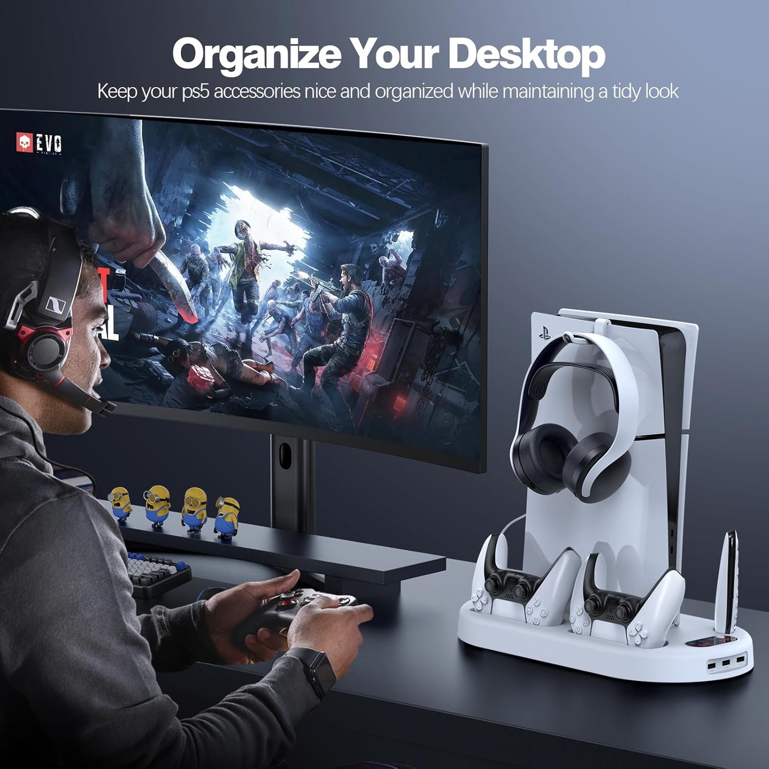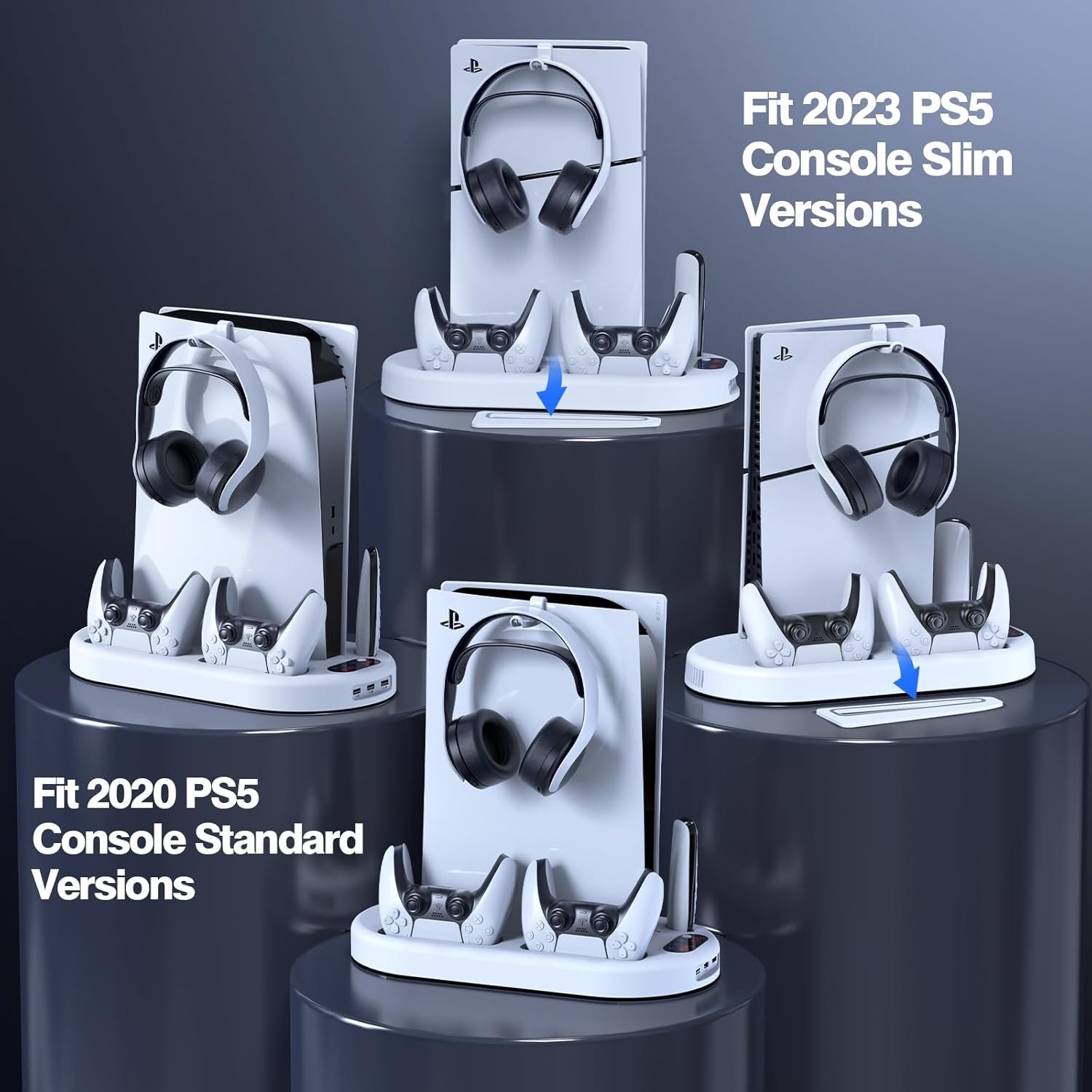 Fits PS5 & PS5 Slim: Compatible with both 2023 PS5 SLIM and 2020 PS5 disc/digital version. Ideal for displaying the console on gaming desktops, TV desktops, floor, cabinets shelves, or any flat surface.