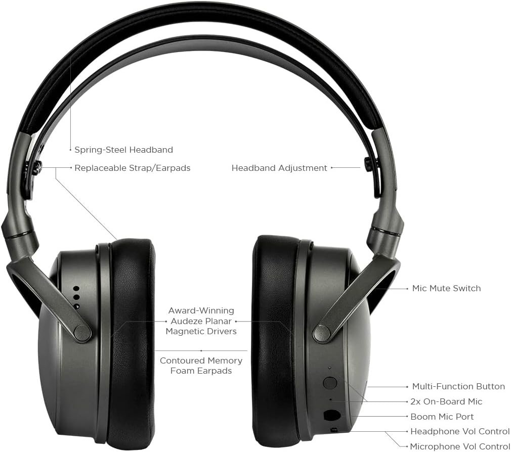 80+ hours of low-latency wireless gameplay, and get a day of gaming with just a 20 minute charge. You can also connect via Bluetooth and USBAudeze’s unsurpassed 90mm Planar Drivers (about 3 times larger than other headsets) deliver low bass performance and dynamicsA.I. noise filtering technology from our Filter Speakerphone dramatically reduces all background noises from both the boom mic (designed by our friends at Shure) and the built-in earcup mics. No more noise from vacuums, babies crying, key clicks, etcPS version: Works with PlayStation, Mac, PC, and Switch (But not for Xbox). Not all features may work on all platforms. Use our free Audeze HQ app to set your own EQs and other features. Most features should also work on Linux.