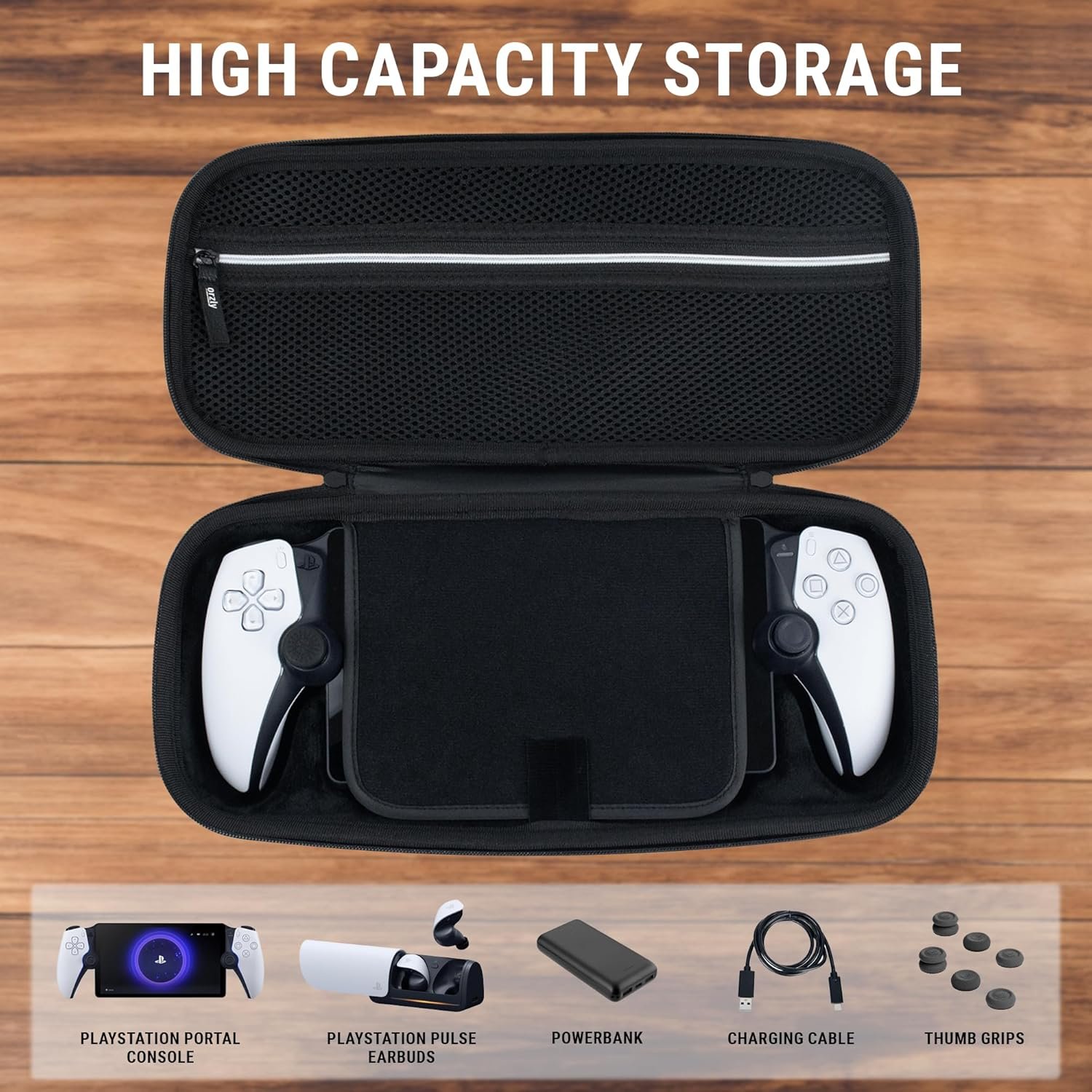 AMPLE STORAGE SPACE – Don’t worry about leaving your essential PlayStation Portal accessories behind. Our case features secure storage with a large elasticated zip pocket, allowing you to stow away your earphones, power bank, charging cables, and more. Everything you need for an epic gaming session is right at your fingertips.
