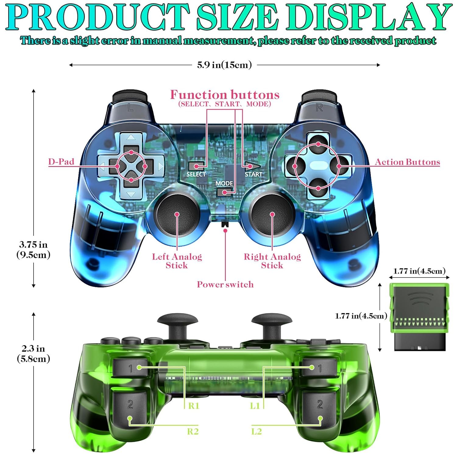 Comfortable Control Cable length has been increased to 5.6 ft, more convenient to play games.wired controller for Play Station 2 with sensitive control and giving you an excellent gaming experience.