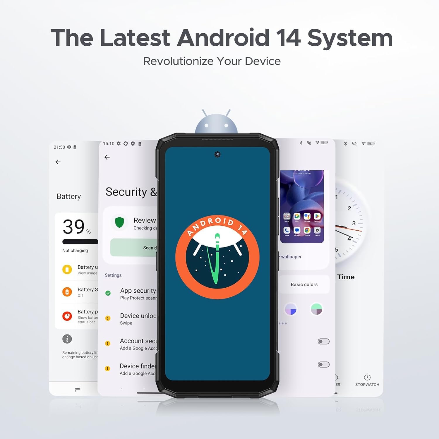 𝟔.𝟓𝟔” 𝐇𝐃+ 𝐃𝐢𝐬𝐩𝐥𝐚𝐲 & 𝐀𝐧𝐝𝐫𝐨𝐢𝐝 𝟏𝟒 𝐏𝐡𝐨𝐧𝐞:The DOOGEE Fire 6 rugged phone unlocked features a large 6.56” IPS HD+ display that delivers vivid colors and sharp details for an immersive viewing experience. The 90Hz refresh rate ensures ultra-smooth scrolling and seamless transitions, perfect for videos, gaming, and browsing. Powered by Android 14, it offers advanced privacy and security features along with extensive customization options, giving you a secure and personalized experience.