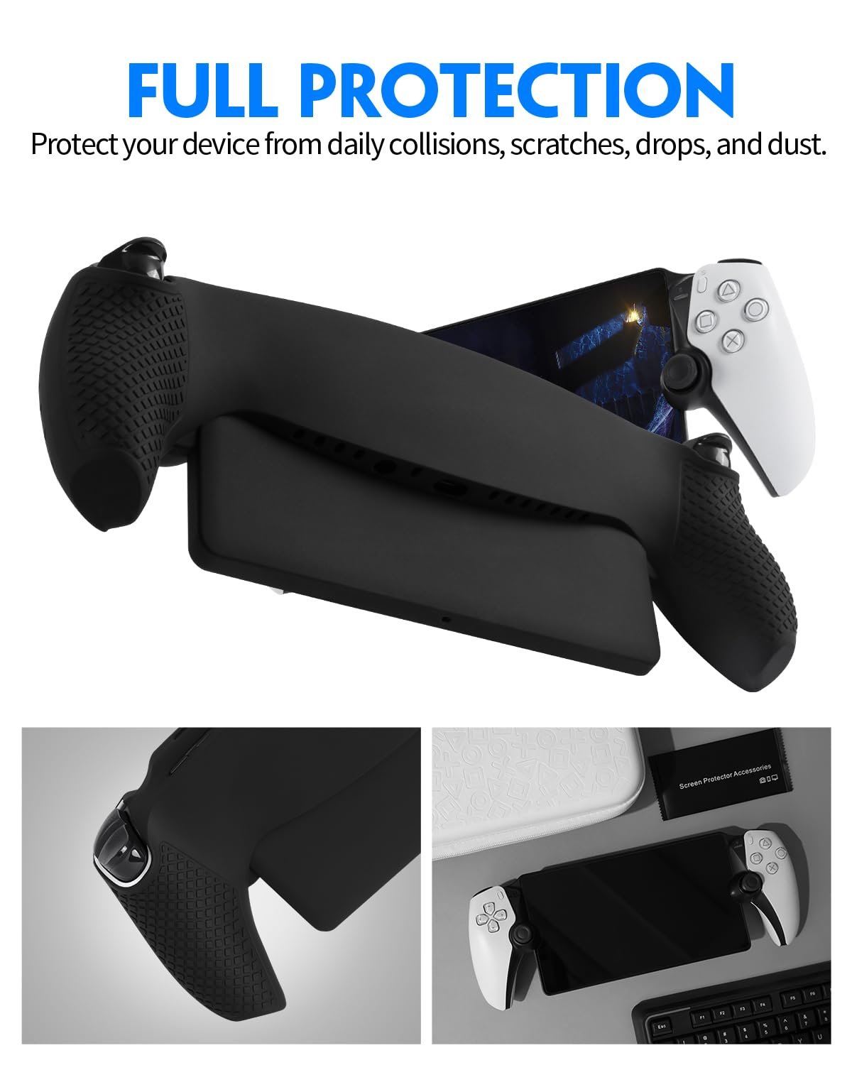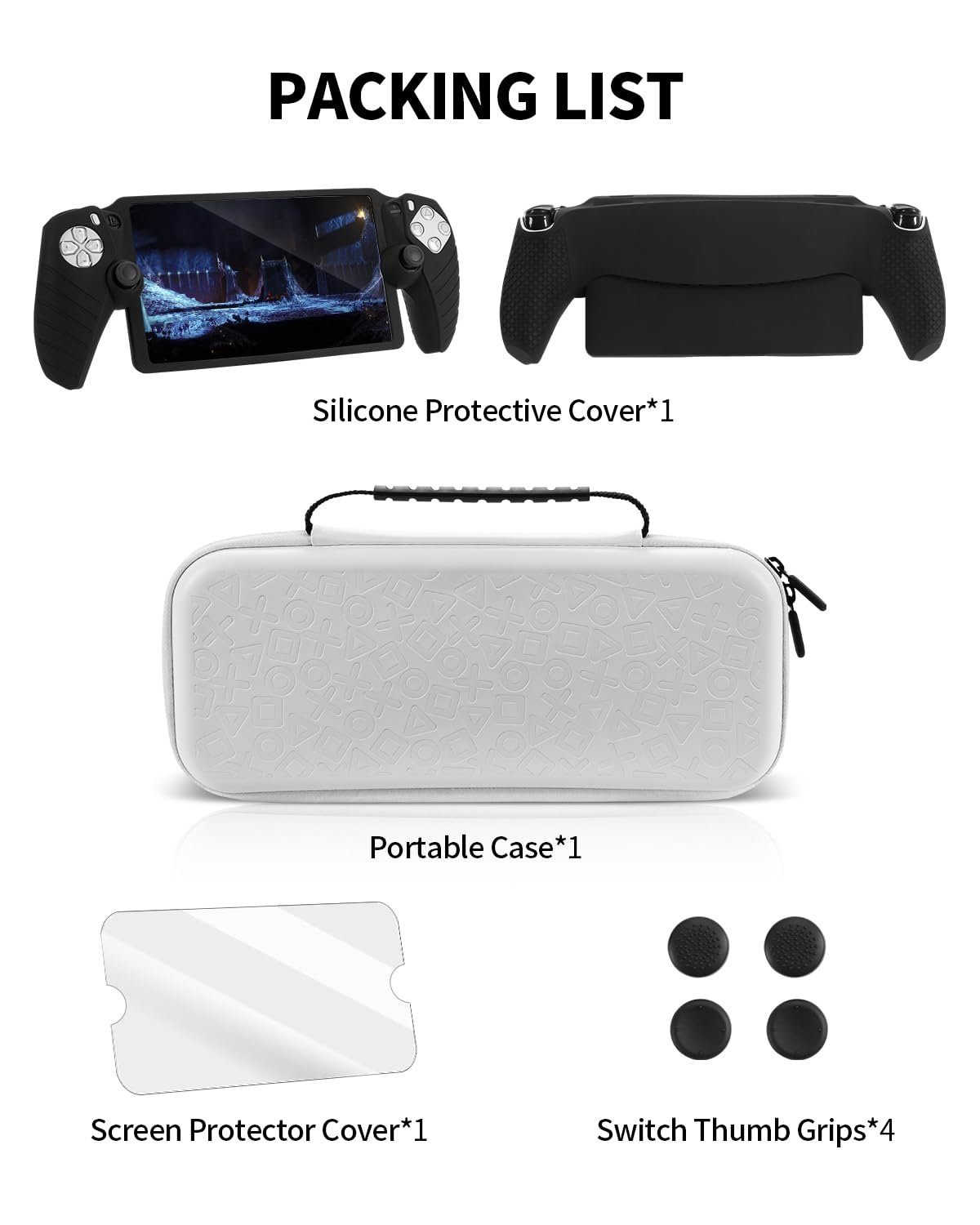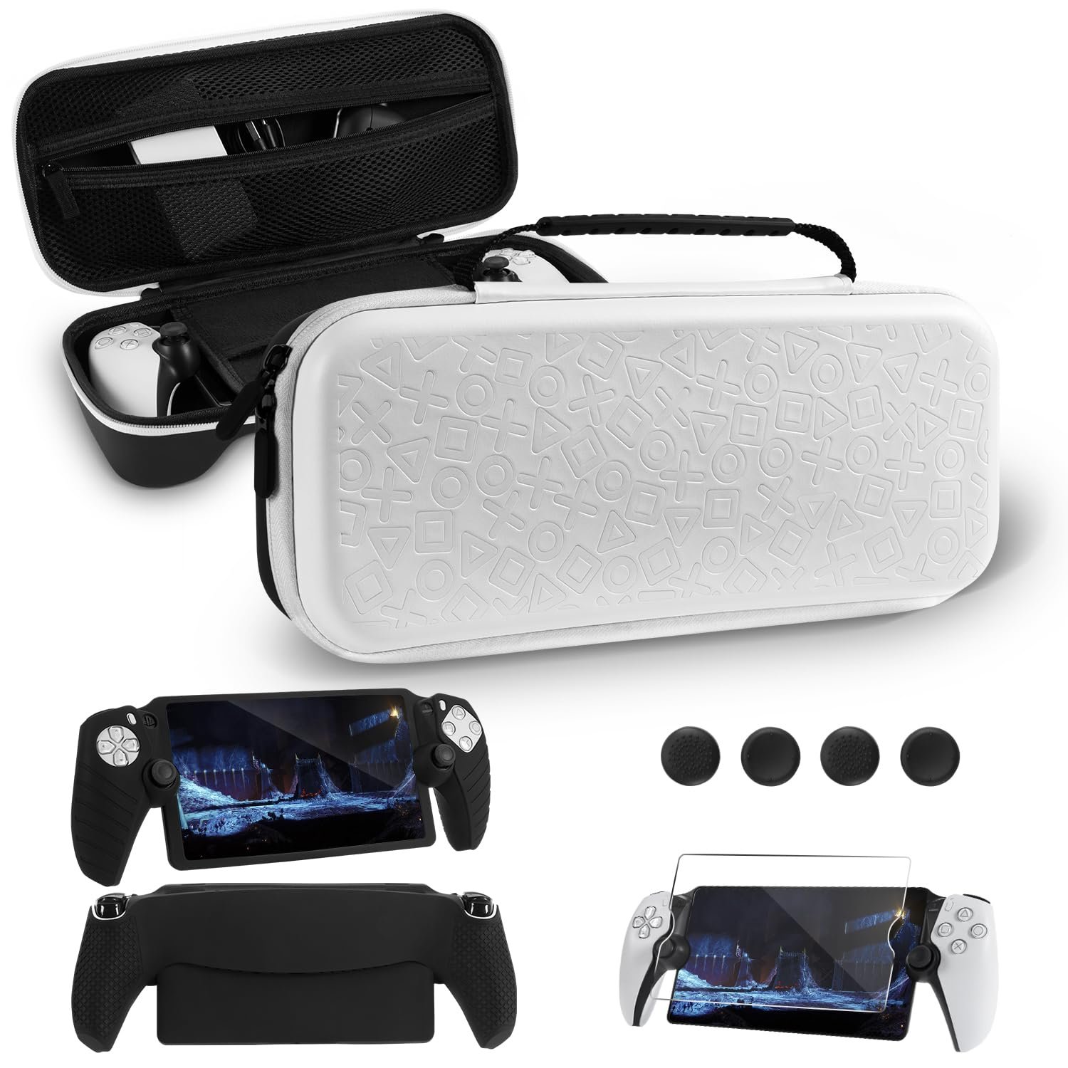 8 IN 1 SET: The playstation portal accessories bundle includes 1* Carrying Case, 1* Silicone Protective Case, 1* Screen Protector, 1* Cleaning Paper, 4* Thumb Grips. Whether traveling or using it daily, this set is the perfect companion for your gaming gear