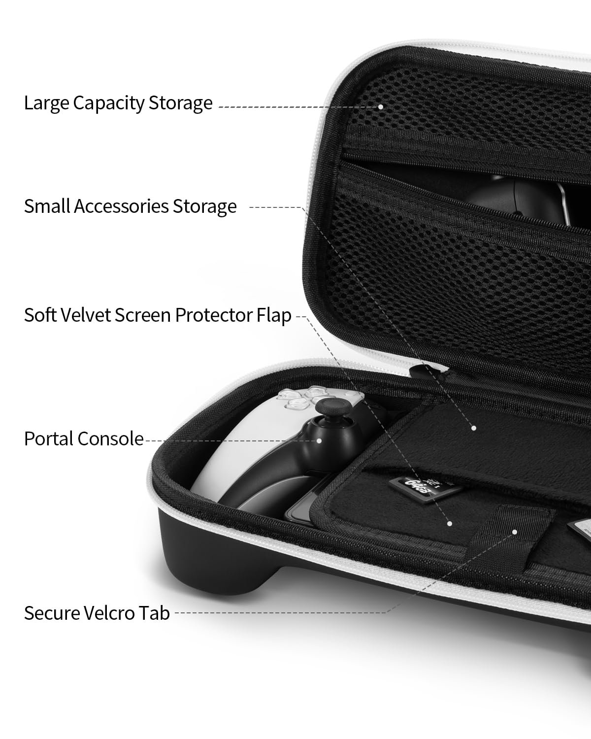 PERFECT FIT: This Ps portal case and screen protector designed for the PS Portal Remote Player features soft lining and molded grooves to prevent movement inside the bag, providing a perfect fit and excellent protection for your gaming device