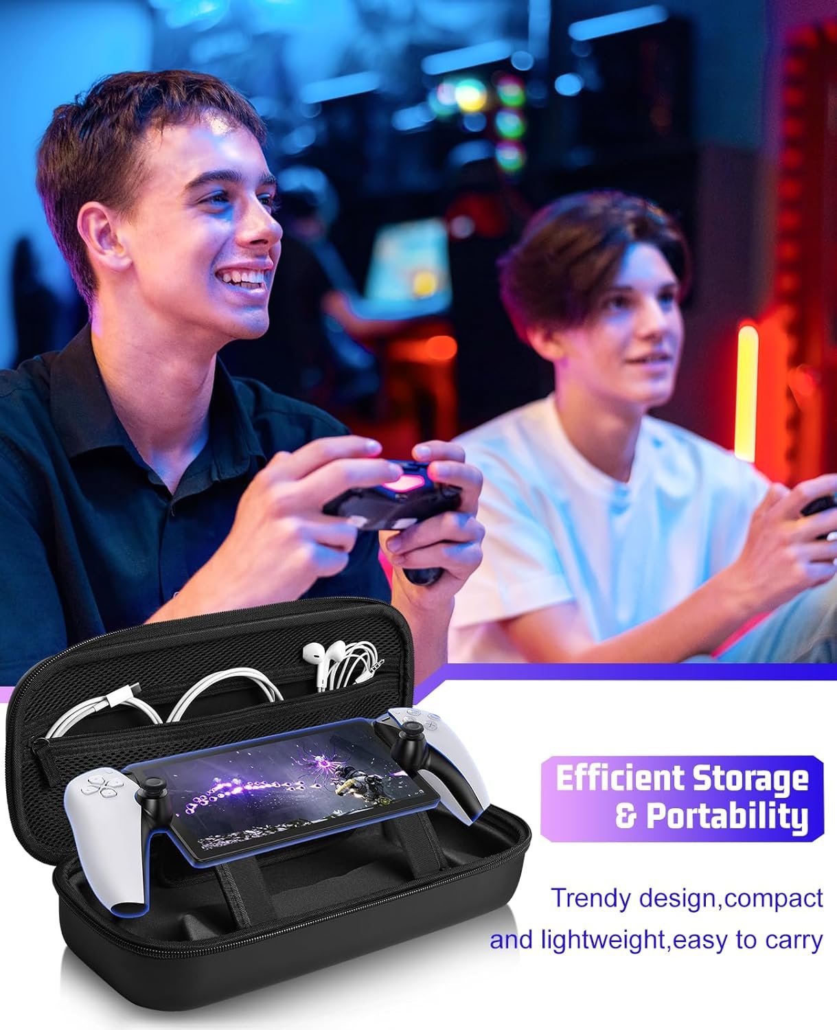 【Efficient Storage & Portability】Trendy design,compact and lightweight,easy to carry.The inner mesh compartment of the zipper can hold HDMI cable,USB cable,headphones and other small accessories.Zippers provide better protection against loss and spillage, keeping everything organized while you’re on the go. Designed with an ergonomic carry strap, this PS Portal suitcase offers flexibility for travel or leisure activities.It provides easy carrying and protection for your PS Portal accessories.