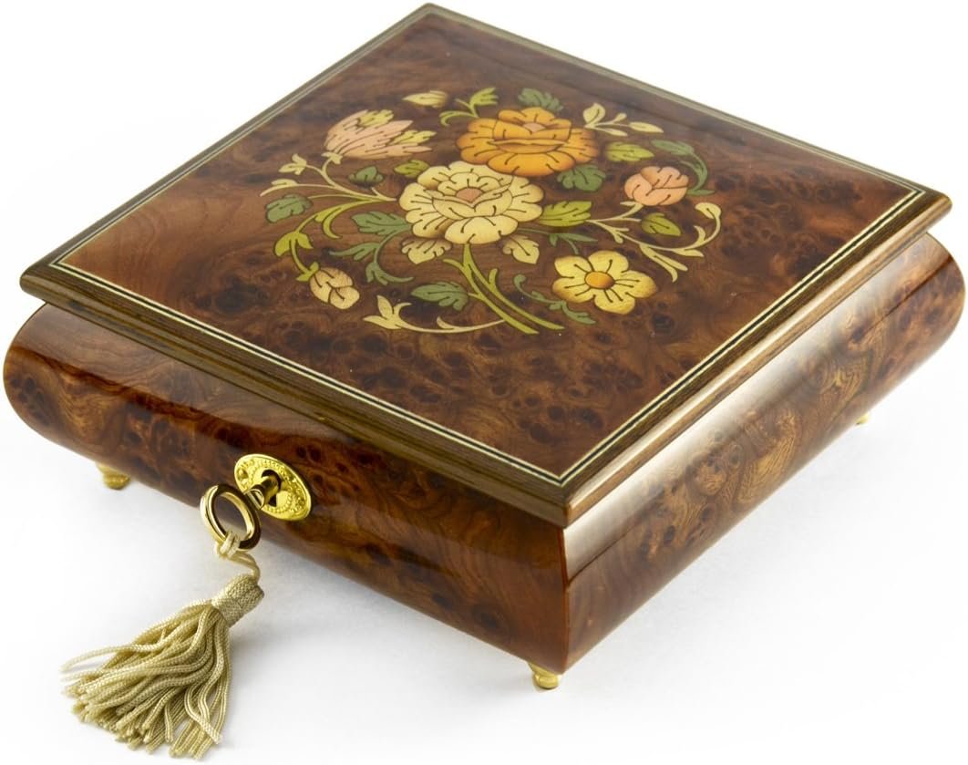 Handcrafted 36 Note Floral Inlay Music Box with Lock and Key – Many Songs to Choose – Sound of Music In Stock