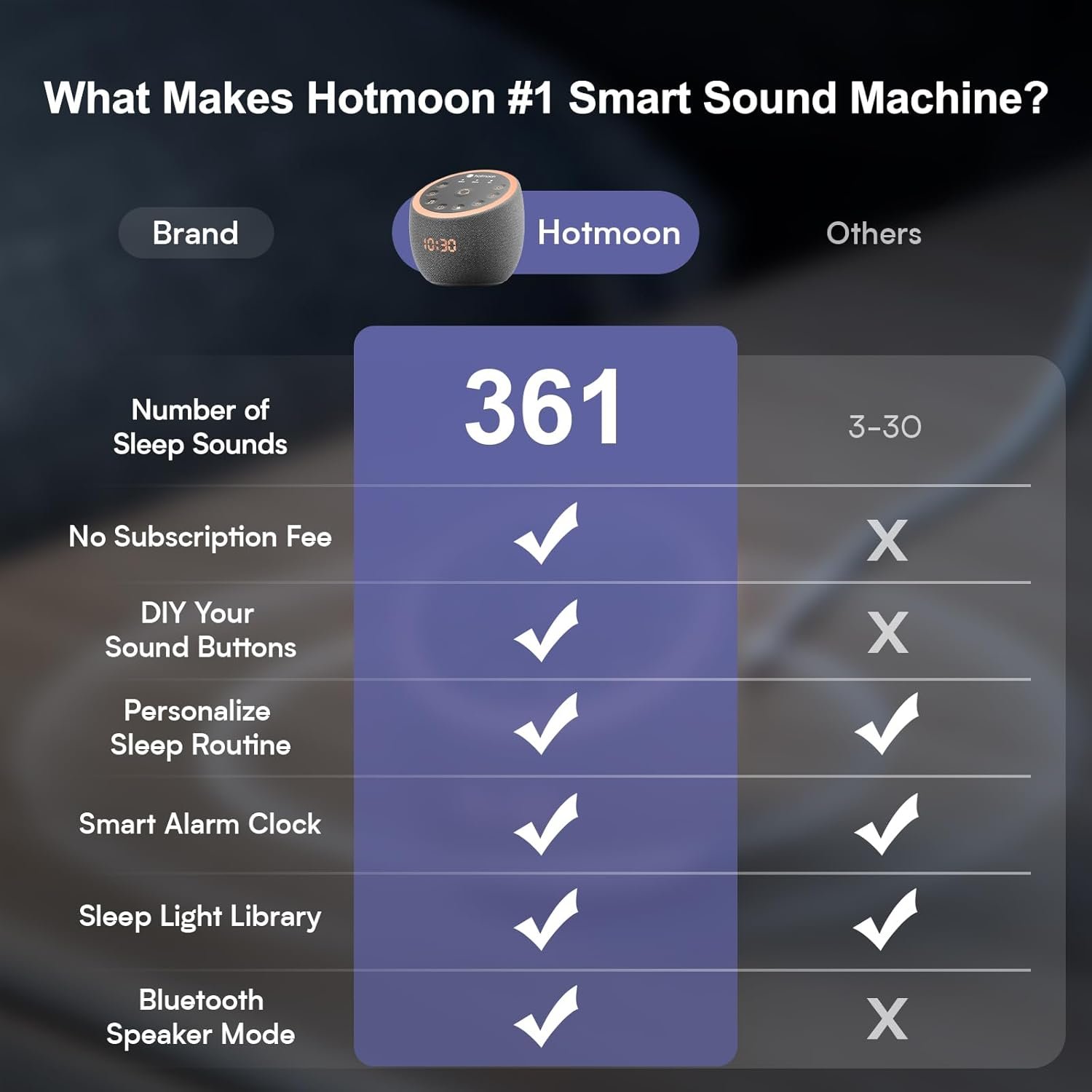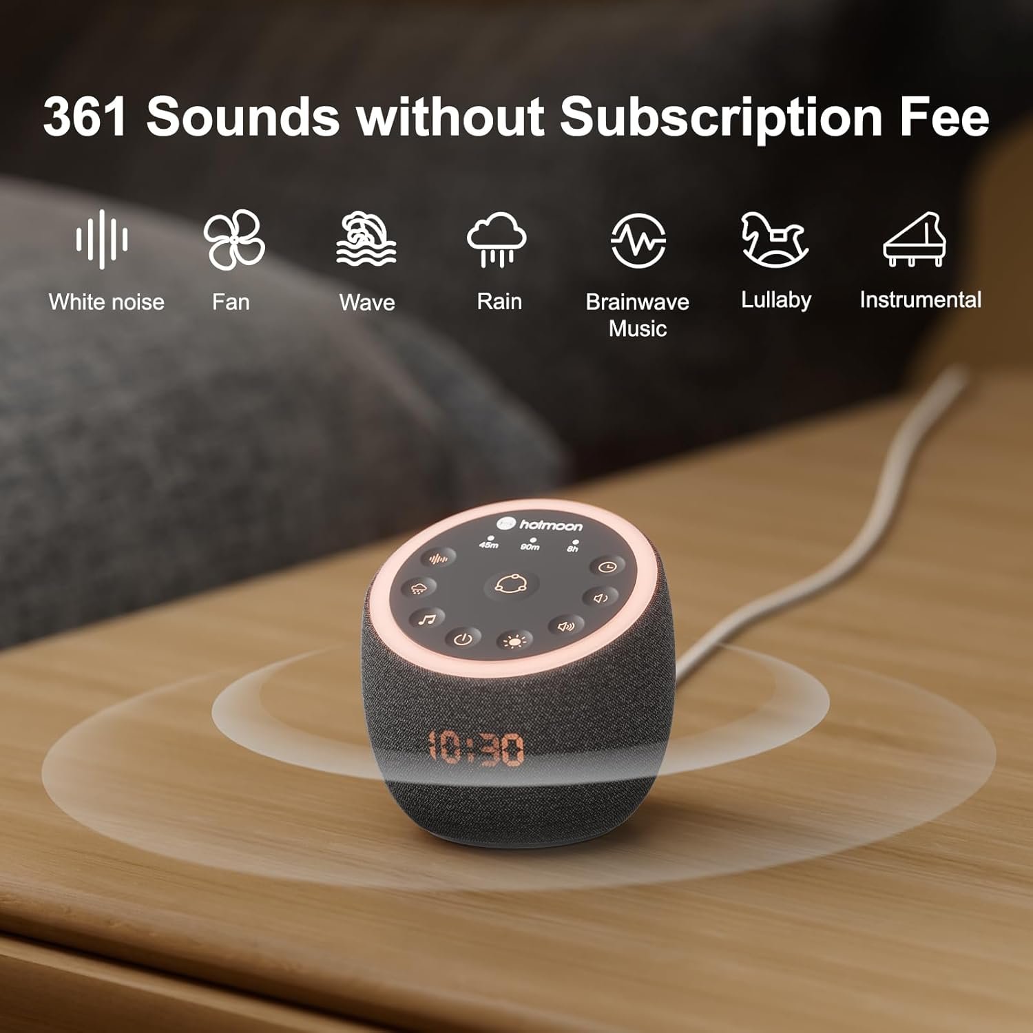【Various Soothing Sounds】Offer 361 high-fidelity sounds, including White noises, Fan sounds, Nature sounds, Lullabies, Alpha brainwaves, Zen sounds, Meditation melodies, High frequency sound etc., You can easily find your preference to create the perfect soundscape environment for sleep, relax, study, work or soothing an upset baby. Let this white noise machine be the helper of your life