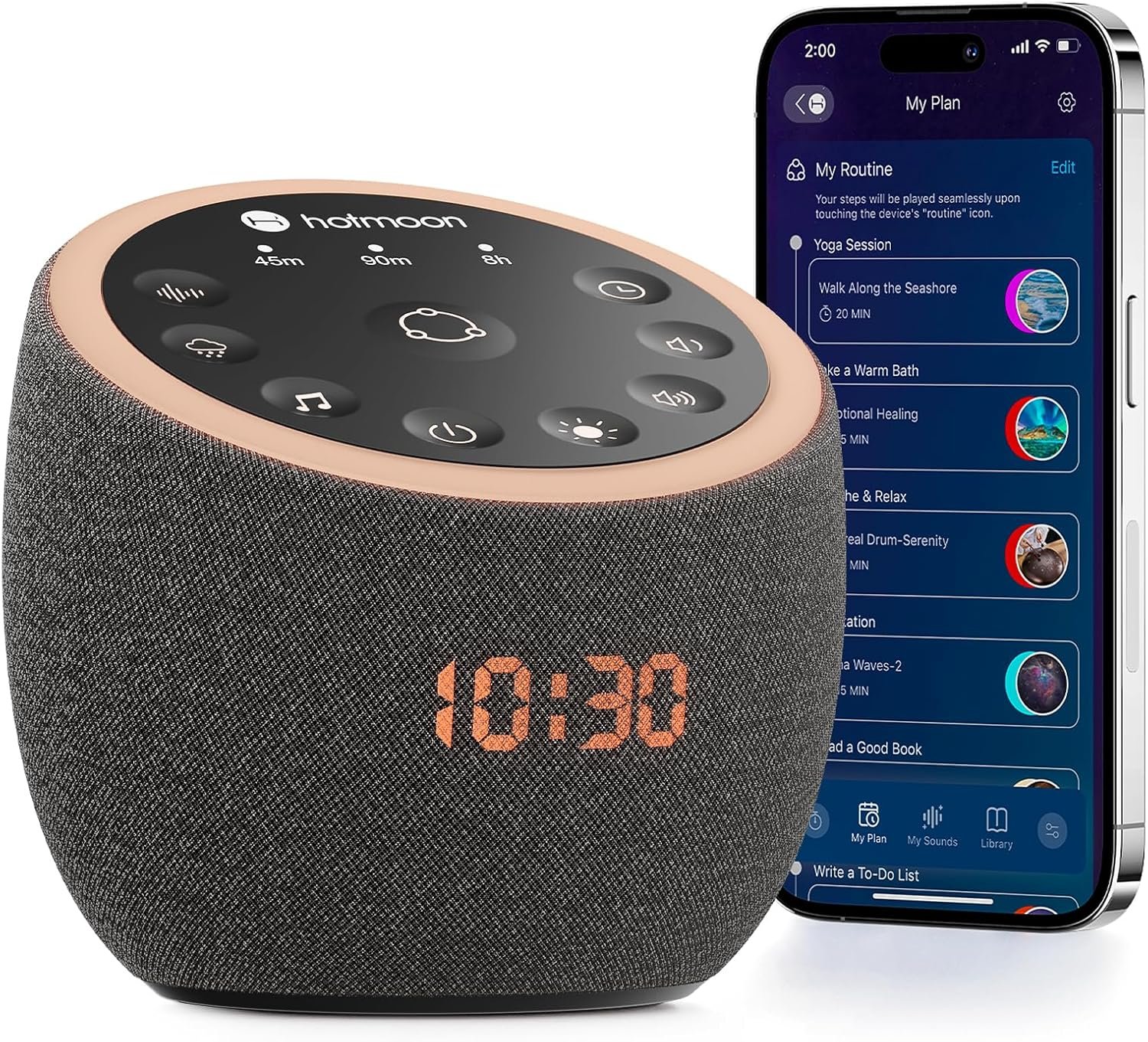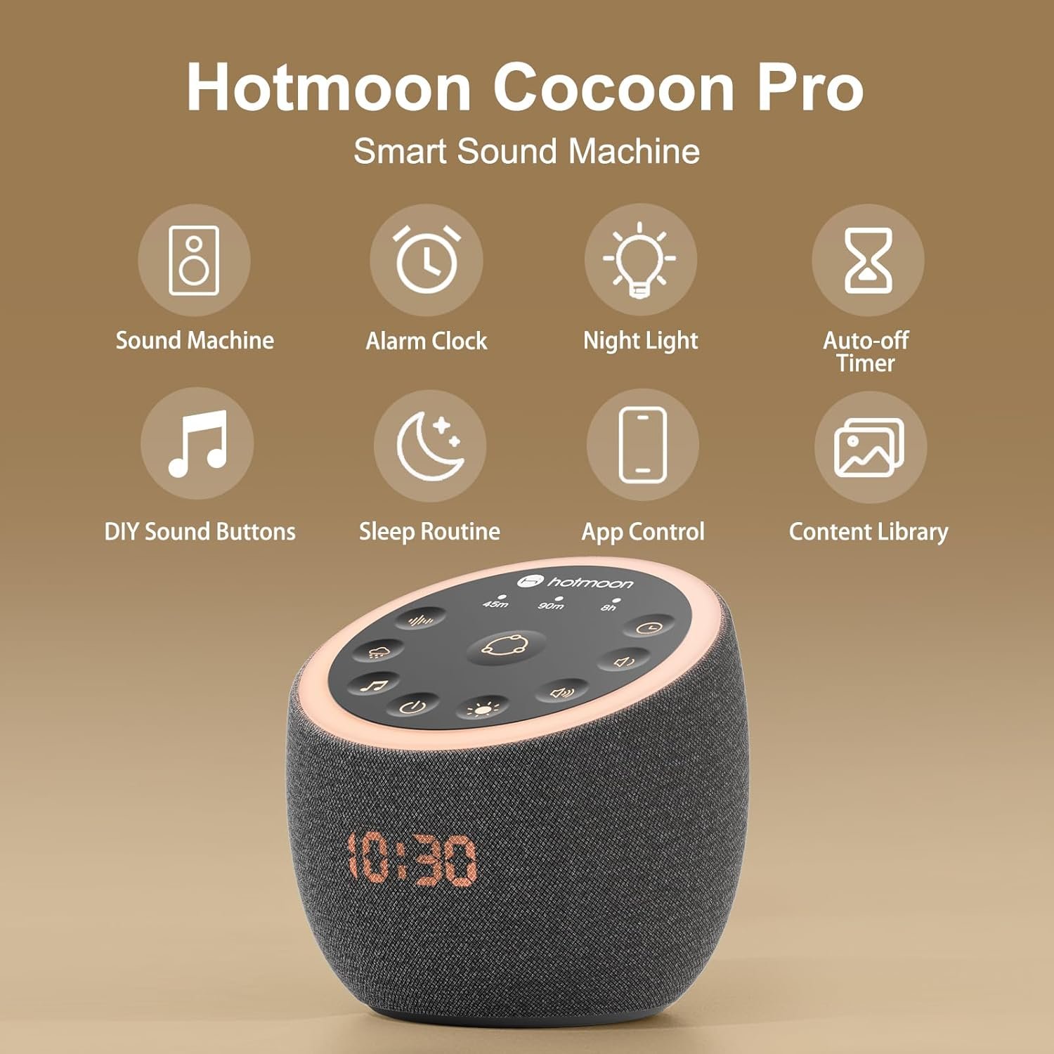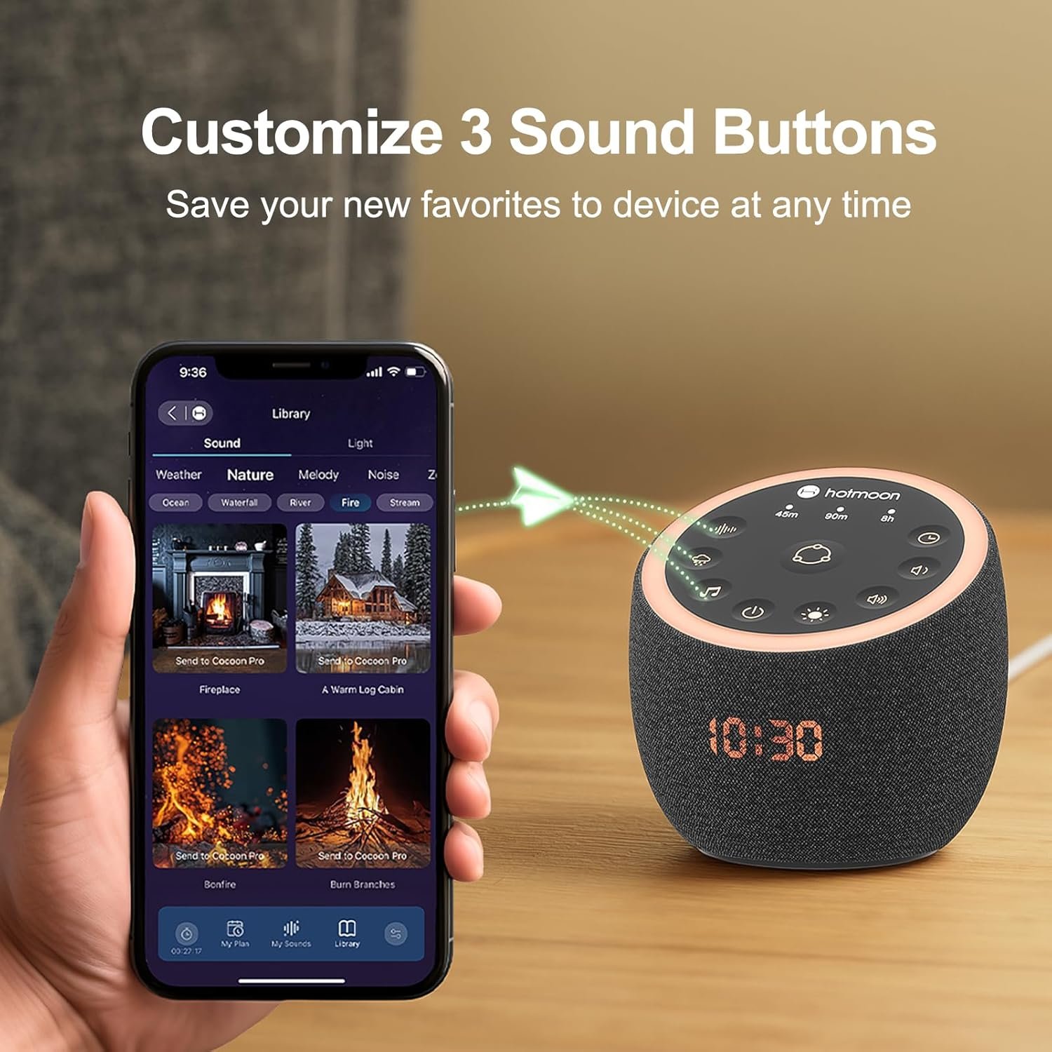 【Easy to Use】 Cocoon Pro baby sound machine can be adjusted remotely via APP on your phone. Or set your preferences once via our subscription-free companion App, and then let sound machine for sleep run smoothly on its own without needing a phone anymore, just a single button tap to start your soundscape routine