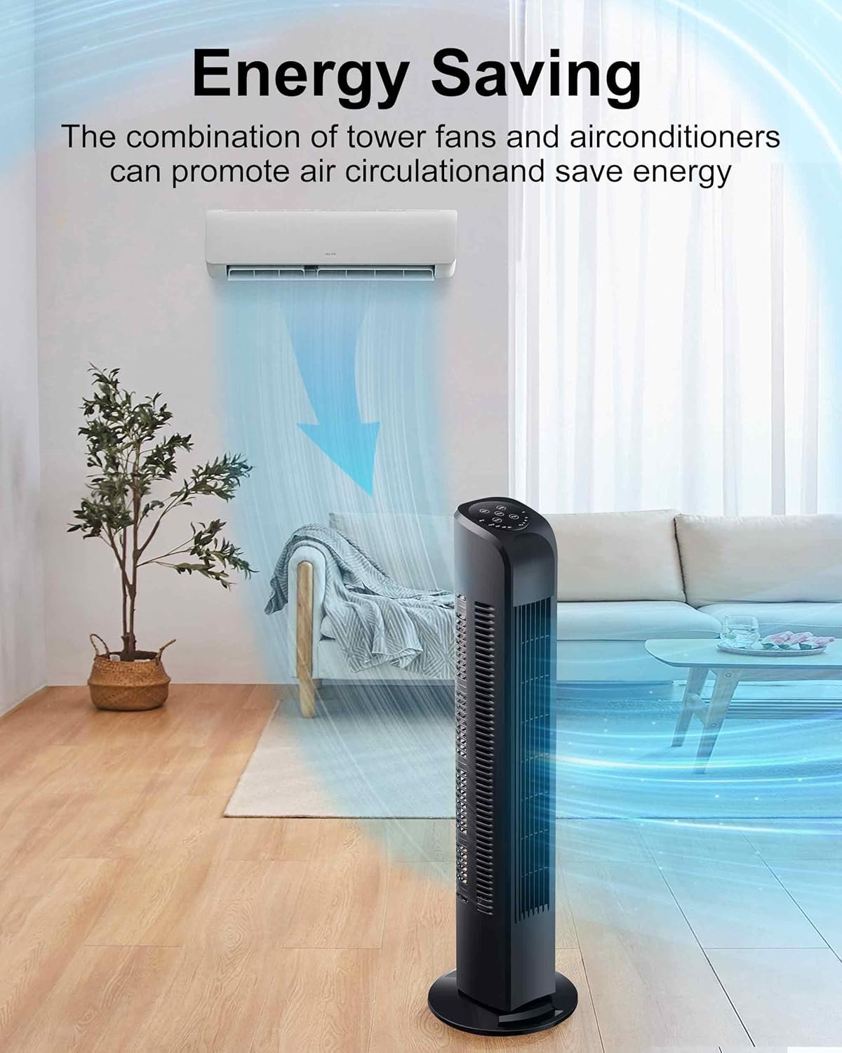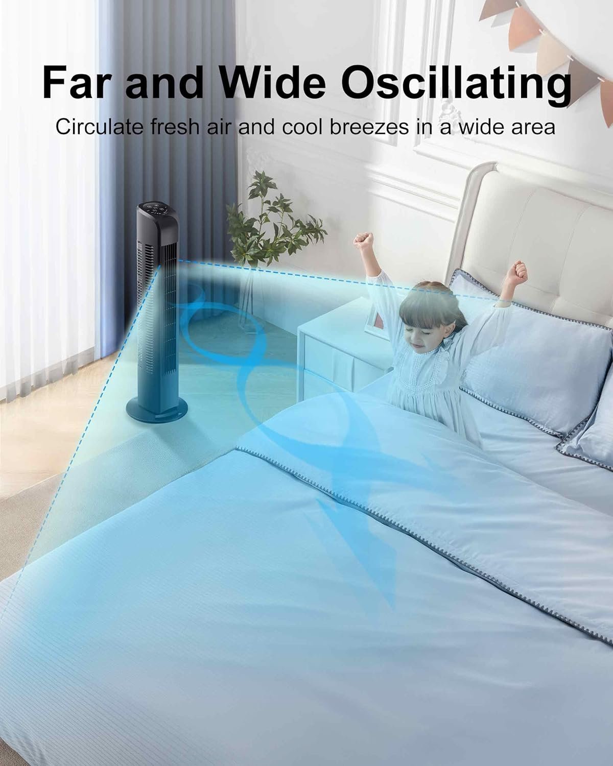 【Space-Saving】: The slim, lightweight, space-saving tower design takes up less space and can accommodate small Spaces that cannot be accommodated by traditional room fans. Welcome to add to your bedroom, study, office, etc.