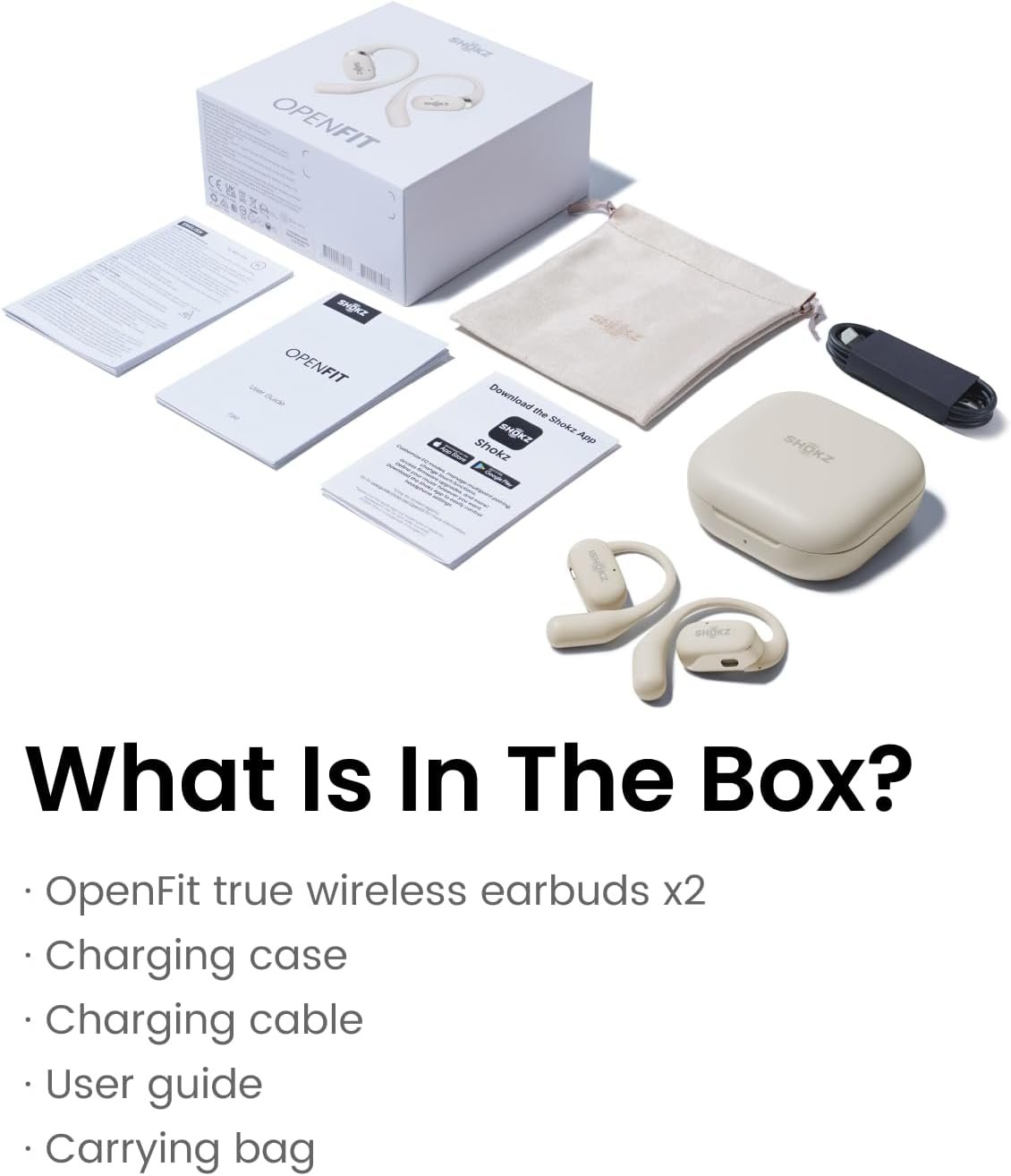 SHOKZ OpenFit – Open-Ear True Wireless Bluetooth Headphones with Microphone, Earbuds with Earhooks, Sweat Resistant, Fast Charging, 28HRS Playtime, Compatible with iPhone & Android, Beige In Stock