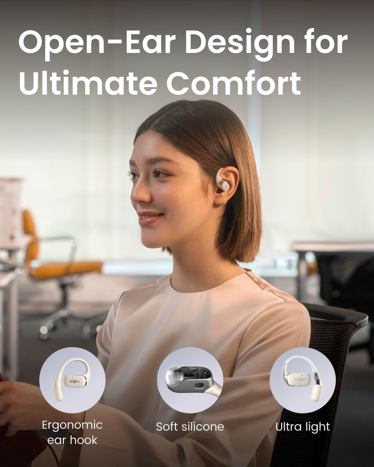 Open-Ear Design for Ultimate Comfort – OpenFit continues the SHOKZ open-ear concept with a compact earbud design. The ergonomic design with ultra-soft silicone cushion provides you with an incredibly comfortable experience
