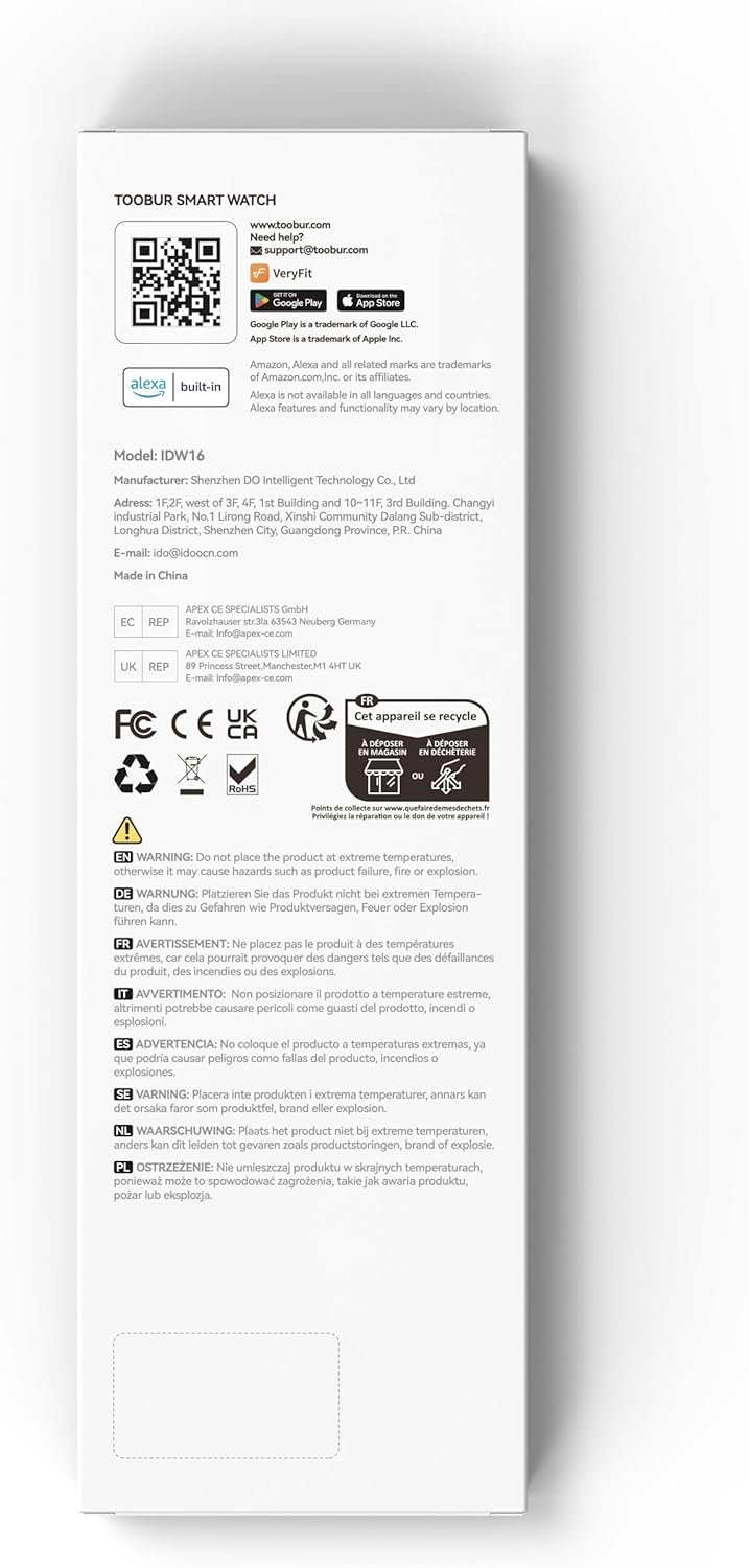 [Alexa Built-in] Enjoy the convenience of Alexa on your wrist! With TOOBUR’s smart watch, you can control your smart home devices, set reminders,get weather updates and more all from your wrist. Simply download the “VeryFit” app from the Apple Store or Google Play, connect to your watch via Bluetooth, and enjoy the convenience of Alexa on your smartwatch.