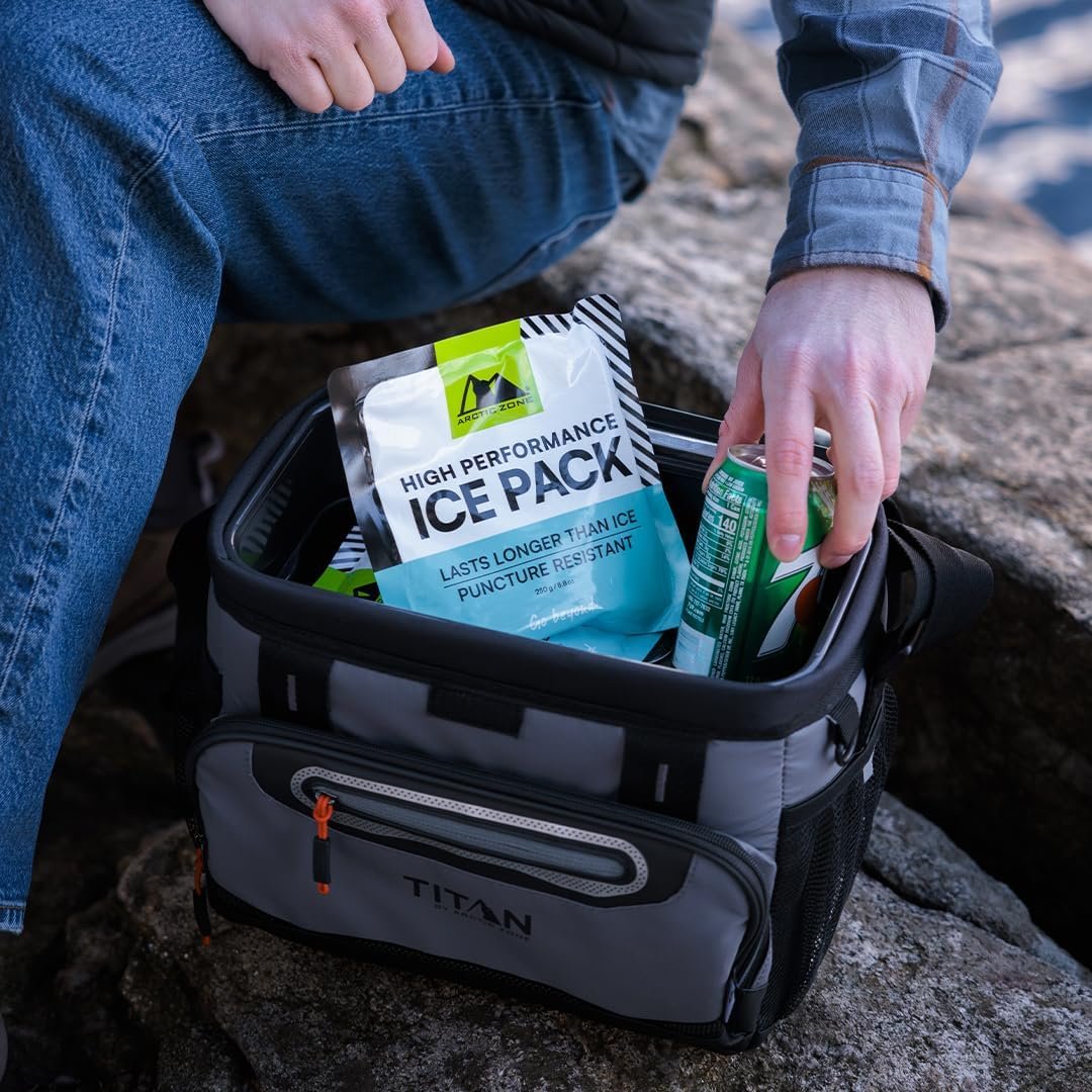 TITAN HIGH PERFORMANCE ICE PACK: Ice pack features a soft, puncture-resistant design; Helps keep cooler and tote bag contents cold