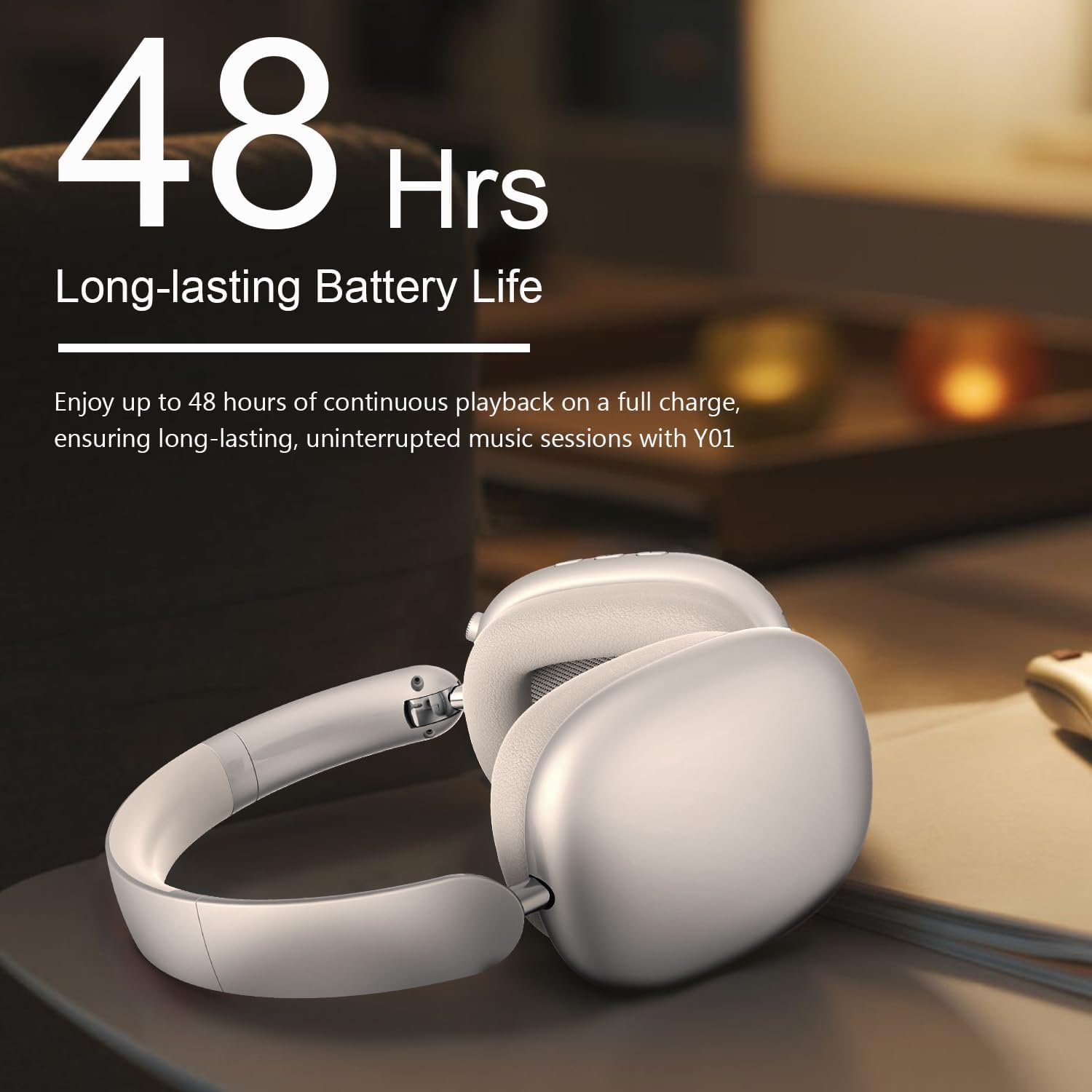 Y01 Wireless Over Ear Headphones, Noise Canceling Bluetooth 5.3 Headphones with Microphones,Hi-Res Audio,48H Playtime,Foldable,Breathable Soft Earpads for iOS/Android/Samsung/PC-Silver In Stock