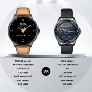 Product Description 1.43” AMOLED Smart Watch for Men The 1.43-inch AMOLED mens smart watch boasts an impressive resolution of...
