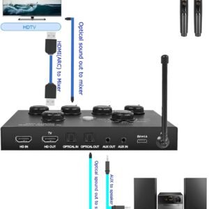 $130.00 Buy Now Quick ViewSound Town 16 Channels Wireless Microphone Karaoke Mixer System w/ 2 Wireless Mics, HD ARC, Optical (Toslink), AUX, Supports...